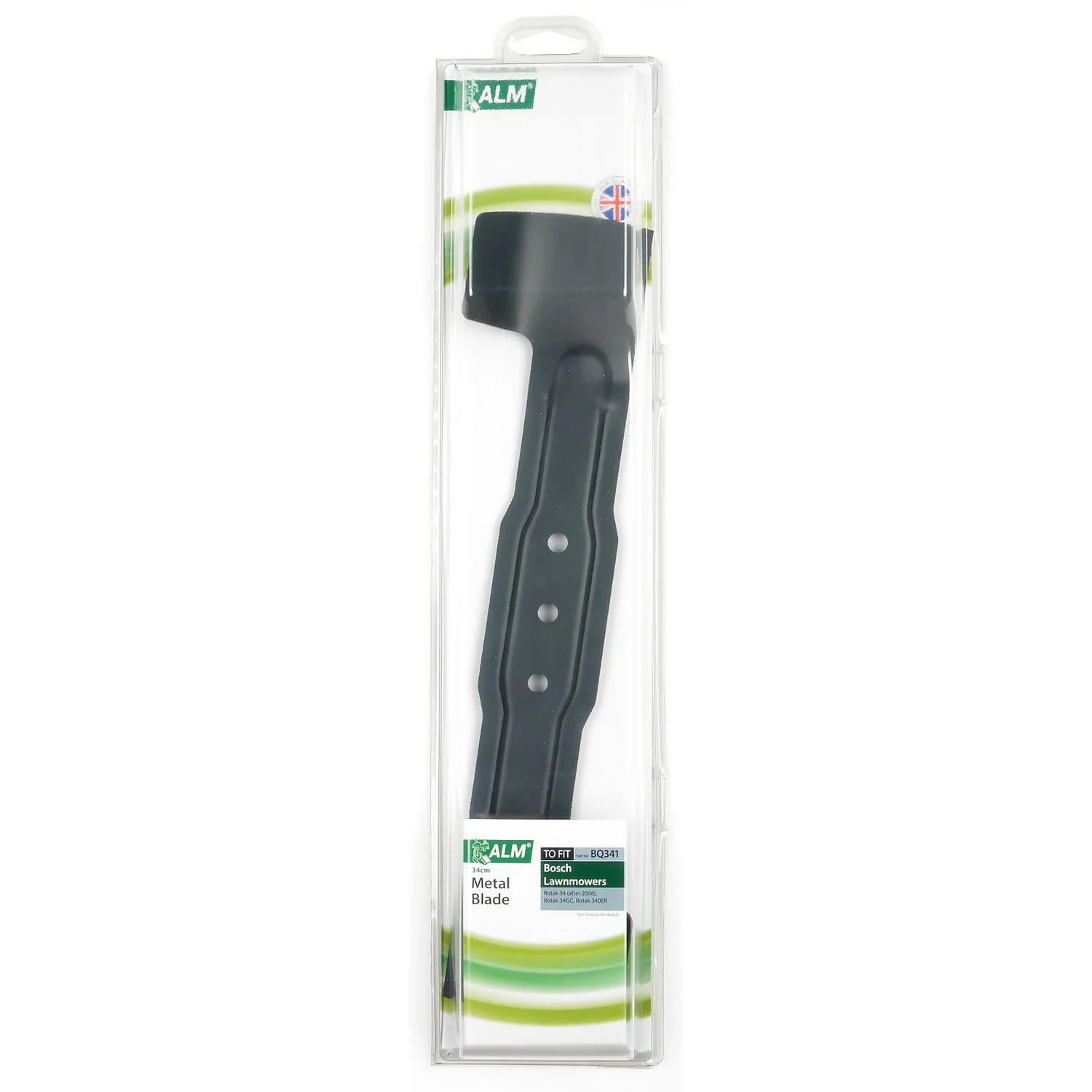 Replacement 34cm metal lawnmower blade for Bosch lawnmowers.